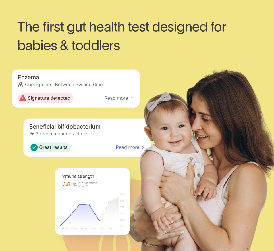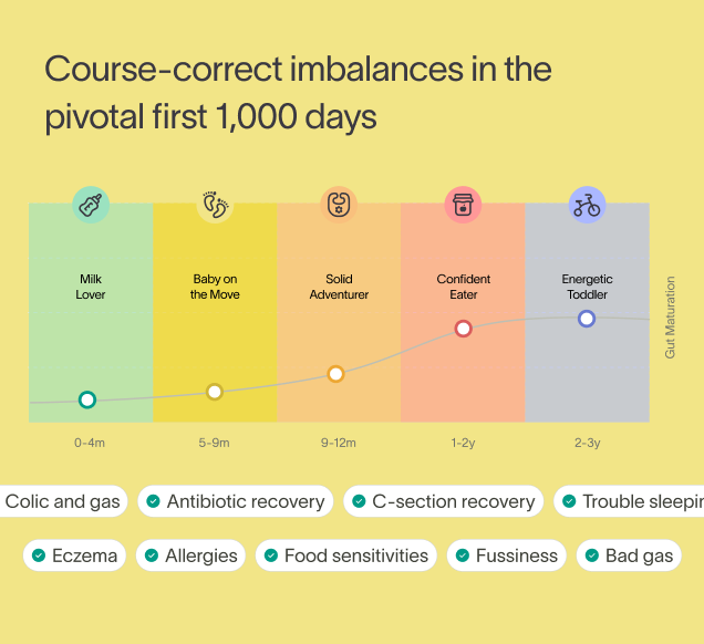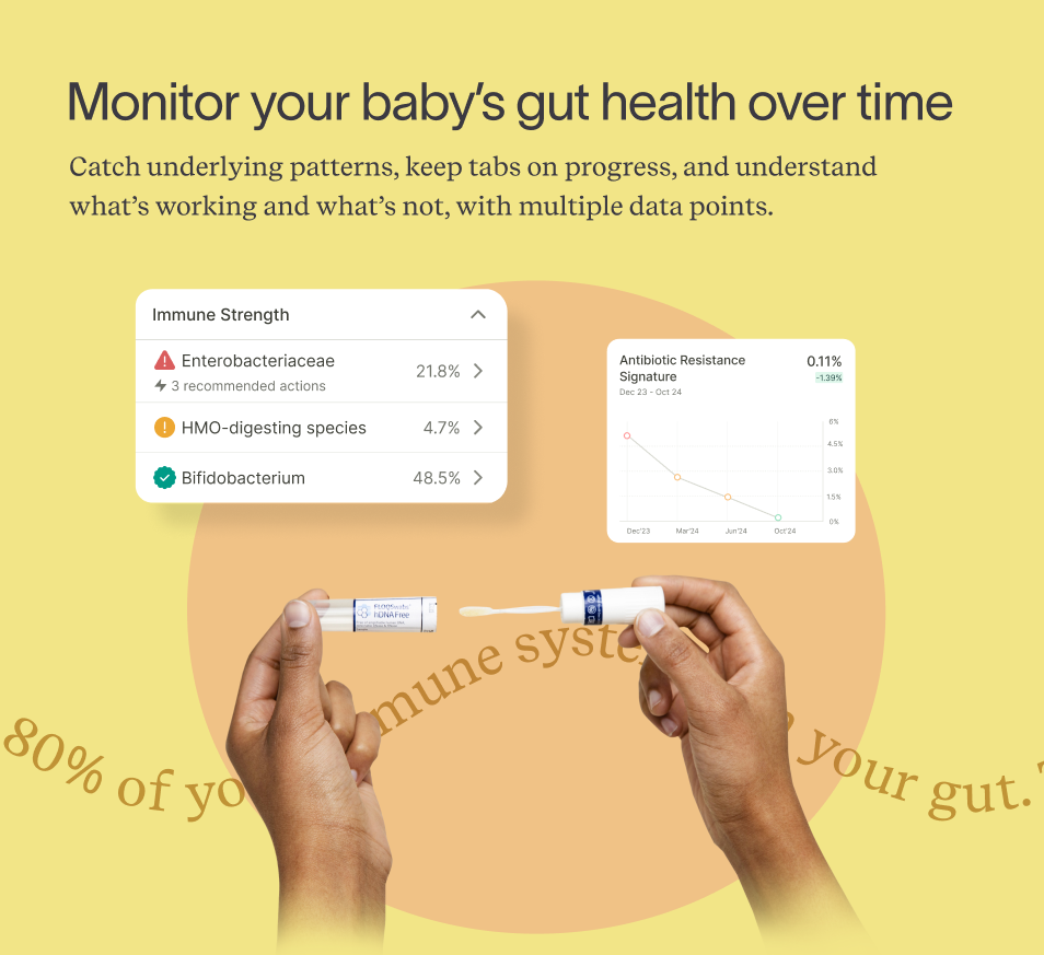 We recommend testing the first time to get a baseline of their days, and then at least one other time to see the changes in how—their gut has shifted. During the first 1,000 many things can cause shifts in the baby's gut fairly quickly including starting daycare, and more. Introducing more foods, formula feeding, antibiotics, recovering make informed decisions during this critical period. From sickness, introduction to daycare and more. Seeing how their gut has shifted can help you make the most impact on your baby's gut during this critical period.